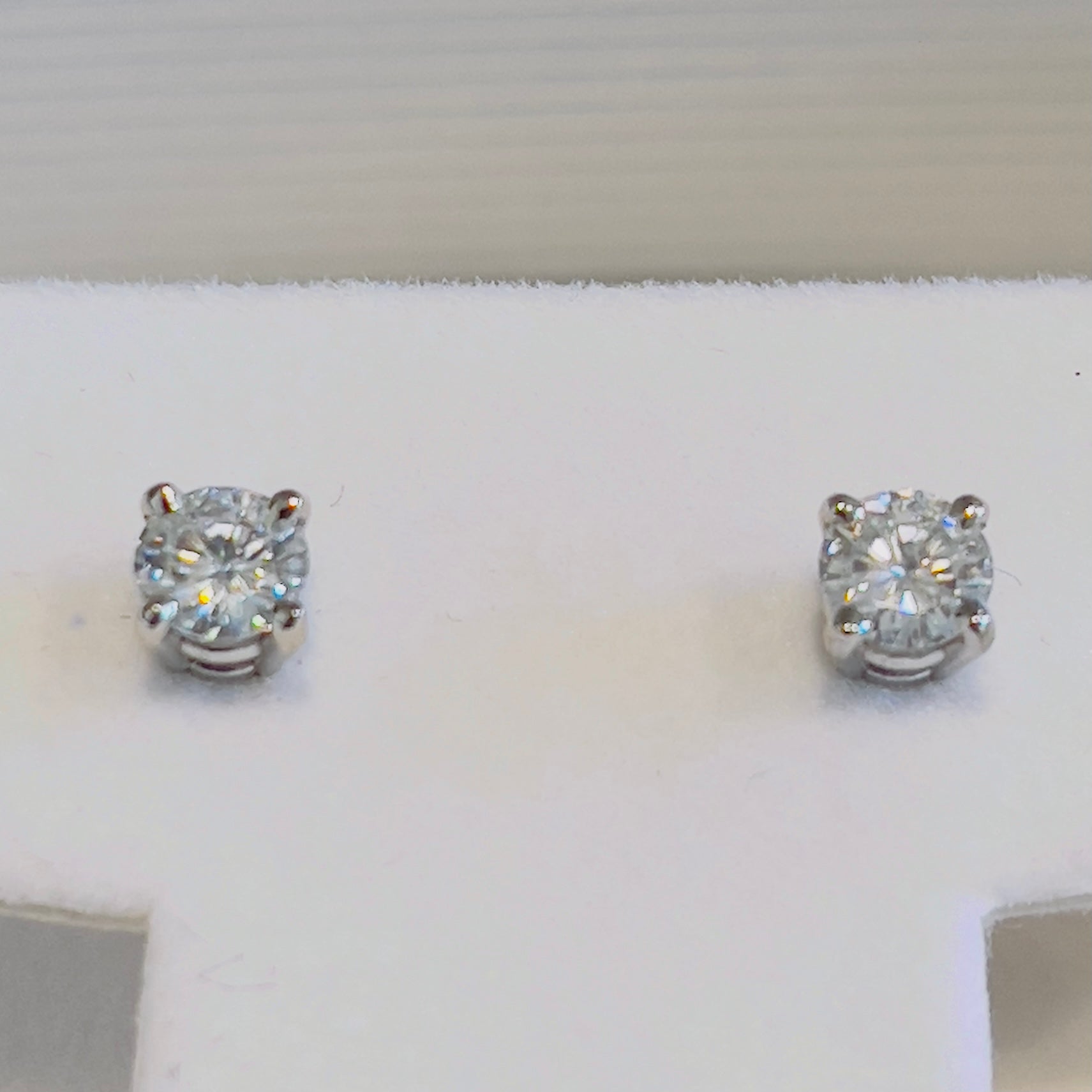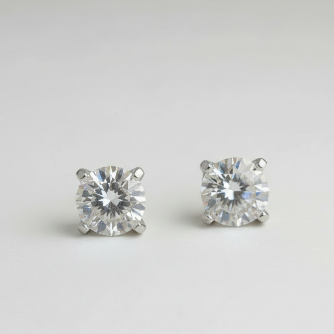 Moissanite and White Gold Stud Earrings Timeless elegance meets modern brilliance in these sophisticated stud earrings. Featuring lab-created moissanite stones set in lustrous white gold, these pieces deliver exceptional sparkle and durability for everyday wear or special occasions.