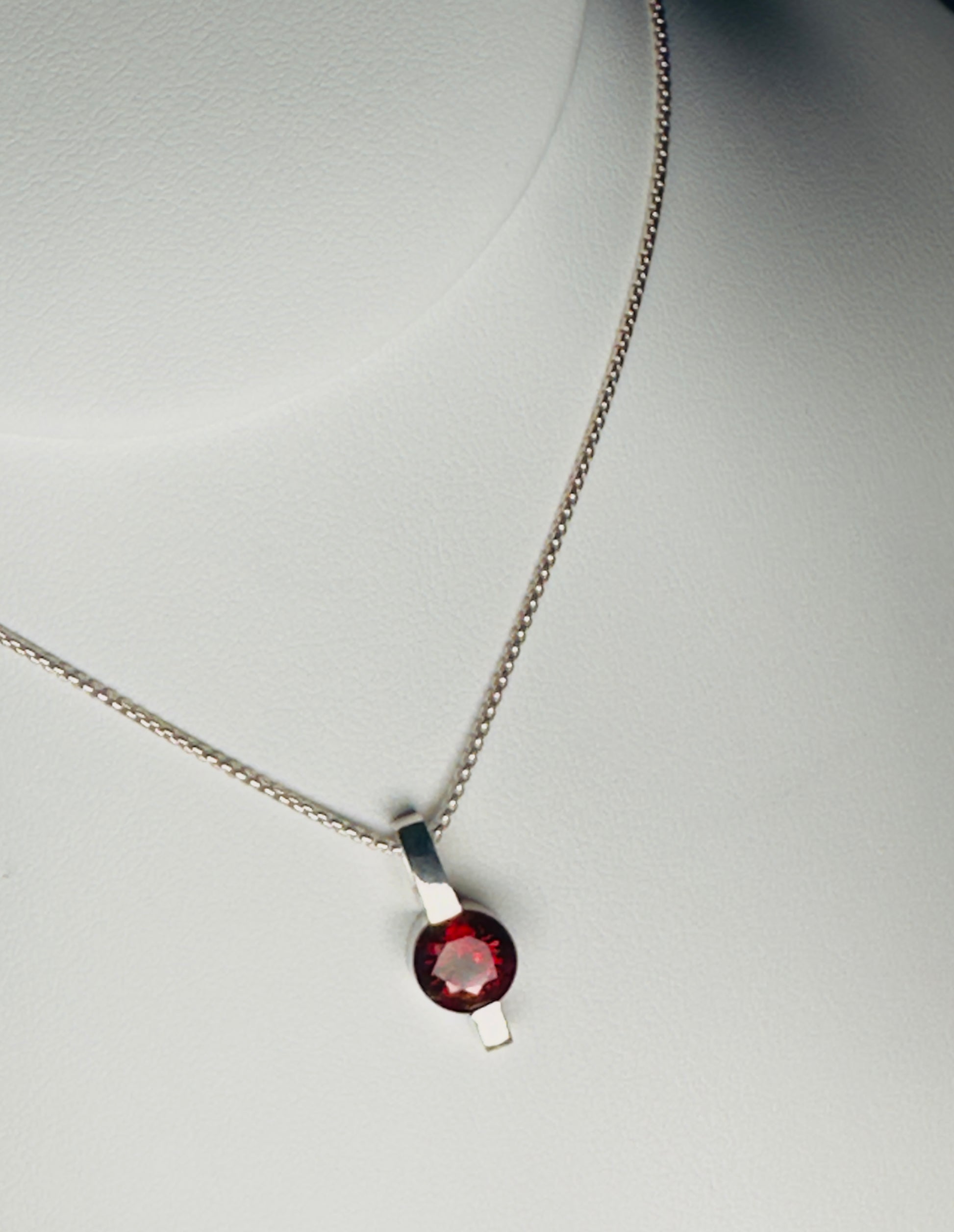 Prized for its vivid red hue, commands attention in this refined necklace. This rare variety of garnet exhibits exceptional brilliance and clarity, making it a distinguished choice for collectors and connoisseurs.